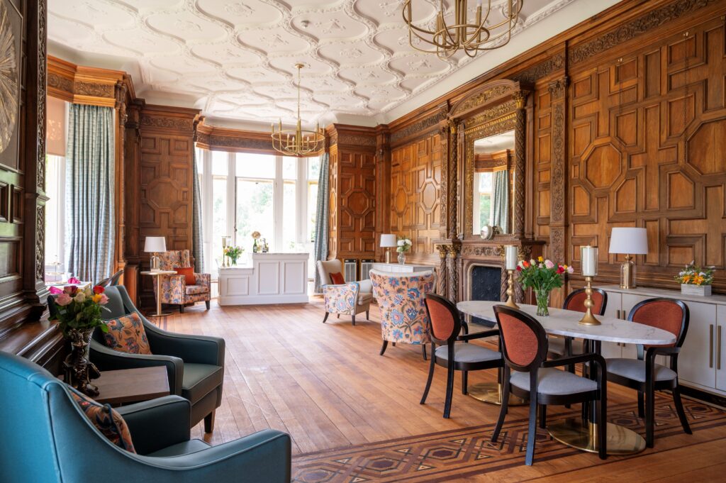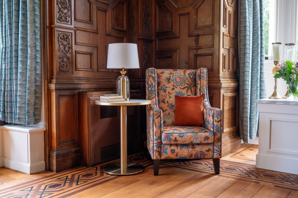 We were invited to refurbish two key communal spaces at Greathed Manor Care Home: a well-used activities lounge and a smaller, quieter drawing room. The aim was to create environments that would support both social engagement and peaceful retreat, while maintaining the character of the home.