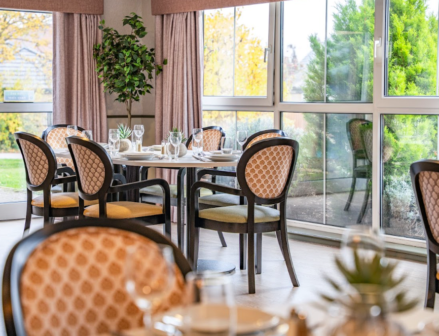 The dining room at New Meppershall Care Home was a large, open space that felt underused and lacked warmth and identity. The aim was to transform it into a welcoming, functional environment that would encourage residents to gather, dine comfortably, and enjoy the space throughout the day.